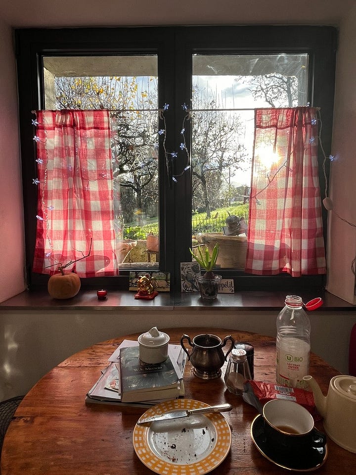 February begins a deep exploration at Camont- from inside to outside spaces, the tables and terraces, the windowsill gardens, and the quiet hidden spaces that define a creative residency. Where do you take a cup of tea? Curl up with a new book? Invite the outside in? Our new February Masterclass for Belonging: Choosing Light at the Edge is now open for sign up- Saturday February 21 at 6 PM French time- 45 minutes of small rituals and a hands-on approach to living a slower and gentler life. Will there be a recipe? Of course! See below for details how to sign up.