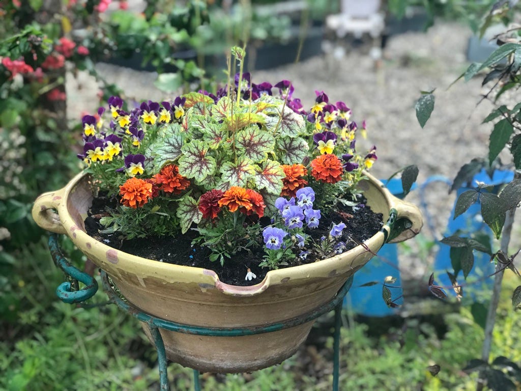 But more than just the view, I also make my kitchen windows a garden with a rotating collection of pots, old terracotta bowls, and vintage kitchenware to celebrate the close at hand herbs and flowers that keep my life anchored in the seasons that I write about. Join me later this month (Sat. Feb 21) for a Masterclass in Belonging to your Kitchen Window. Subscribe for all the details.