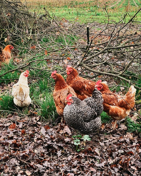 While you might imagine a herd of the big burly Blondes of Aquitaine cattle they raised, or a meandering flock of wooly meat sheep that might graze in the adjoining field, the real troupeau here are the dozen or so laying hens that scattered along the edge of the road and continue to cross the road like so many jokes, clucking “Why? Why are we crossing this road?”