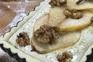 Working Notes on a Roquefort, Walnut, & Pear Tart- a Souvenir and the current Recipe.